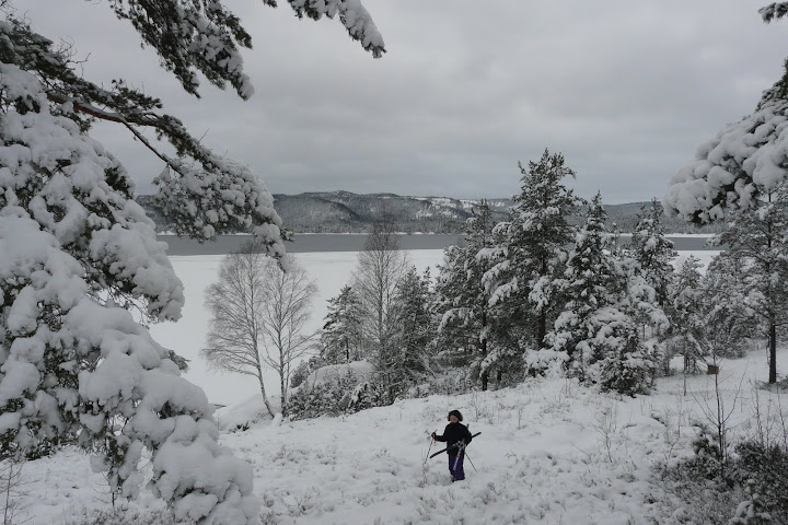 Joop vond het helemaal geweldig in de sneeuw, maar had het hier en daar ook moeilijk: soms verdween hij bijna volledig in de sneeuw en na een tijdje wandelen hingen er hele sneeuwballen aan zijn buik en hoofd. Maar hij leek er weinig last van te hebben en wilde vooral buiten spelen als wij dat ook deden. We hebben nog niet op de skihelling in het dorp geskiet, maar doen dat waarschijnlijk aanstaande vrijdagavond.