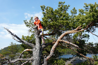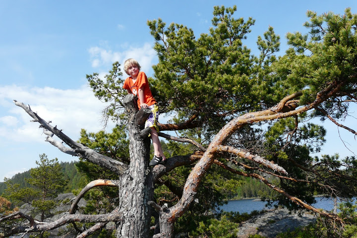geweldig om een stuk te varen en dan uit de boot te springen in het meer. Ook de kano die we nog hebben liggen is tevoorschijn